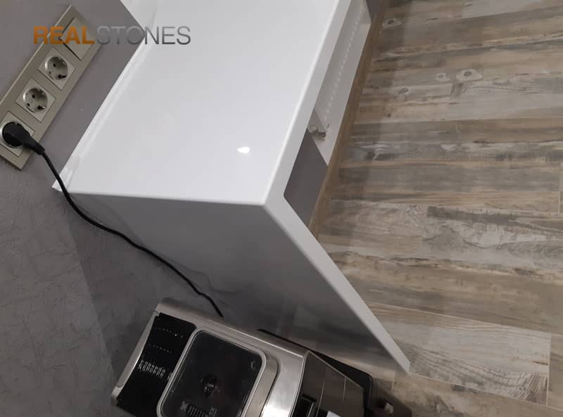 Компания Real Stones делает кухонные столешницы толщиной 12 мм и больше. Кроме того мы используем технологию усиления швов, которая позволяет увеличить стойкость к различным нагрузкам более чем в 5 раз.