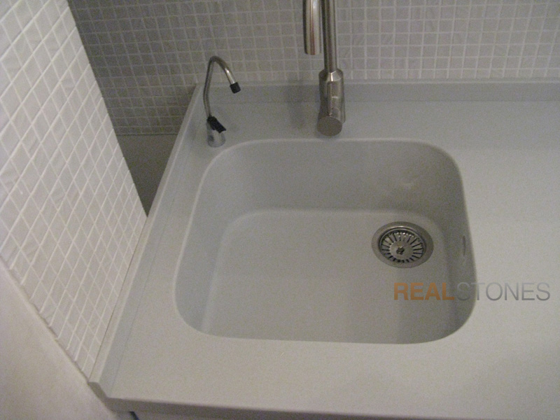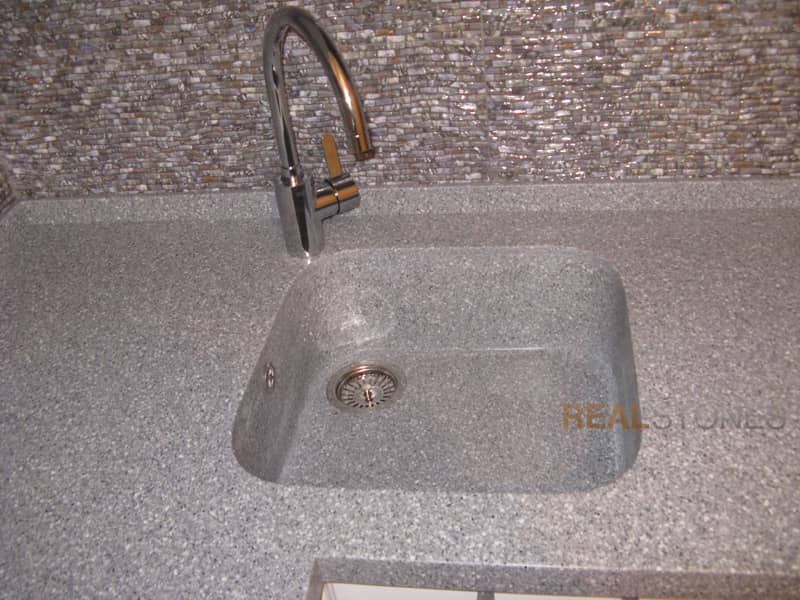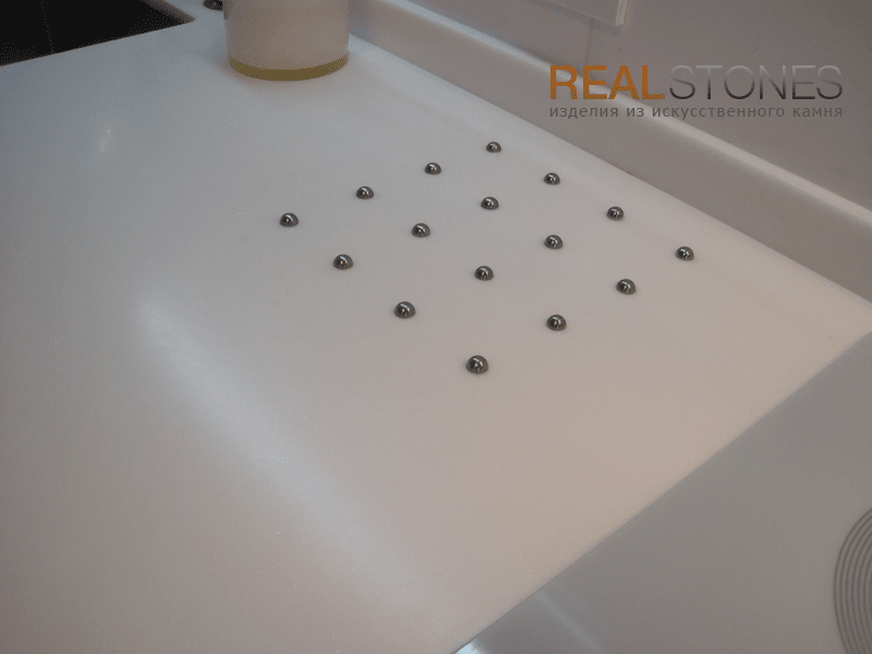Компания Real Stones использует бесшовную технологию производства изделий любой сложной формы. Это исключает возможность появления стыков и швов, в которых может забиться грязь, а также делает легким уход за изделием.