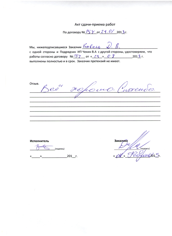 Доволен работой и исполнителями её!