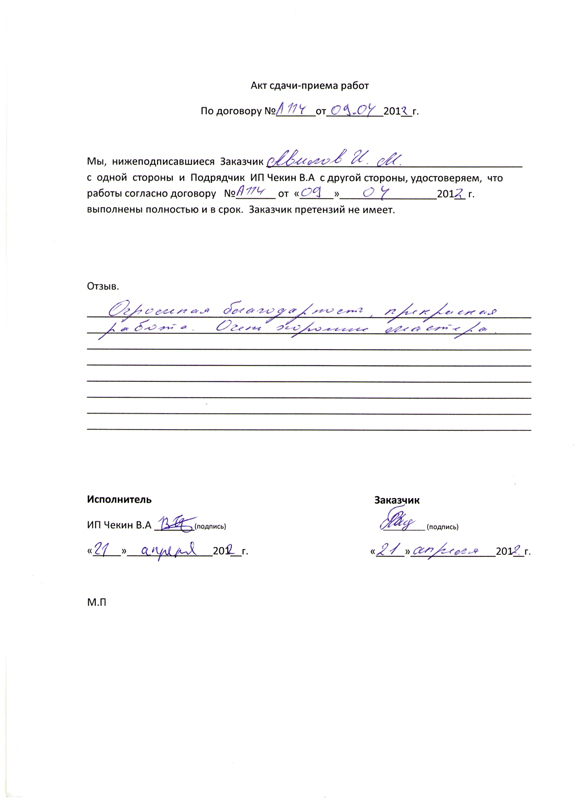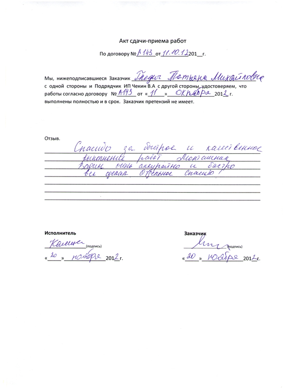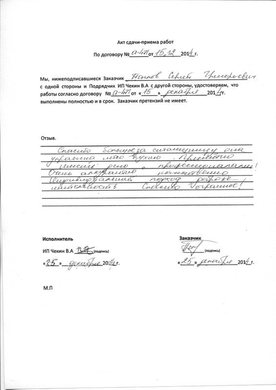 Работы выполнены качественно и в срок!