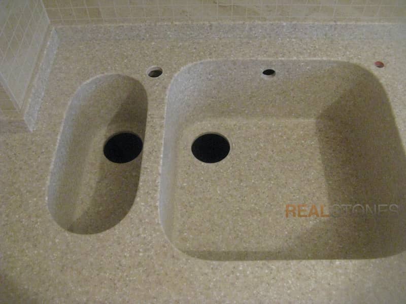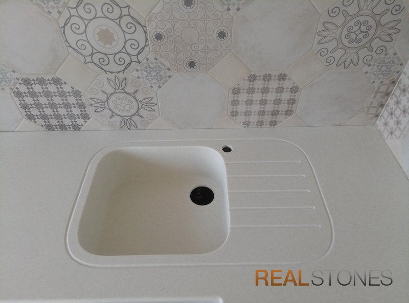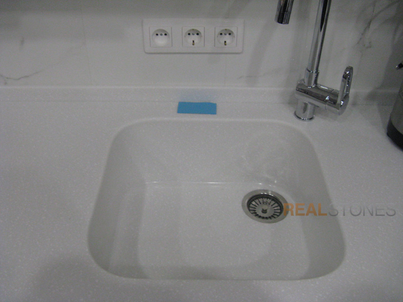 Компания Real Stones использует бесшовную технологию производства изделий любой сложной формы. Это исключает возможность появления стыков и швов, в которых может забиться грязь, а также делает легким уход за изделием.