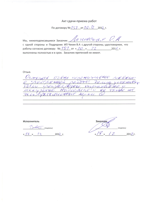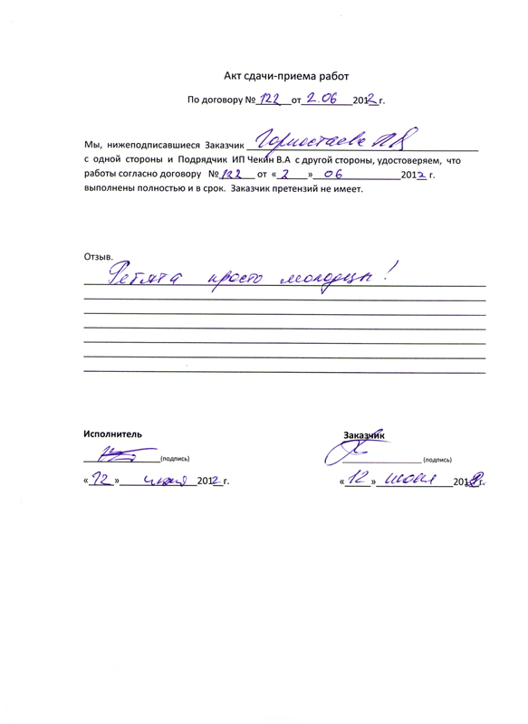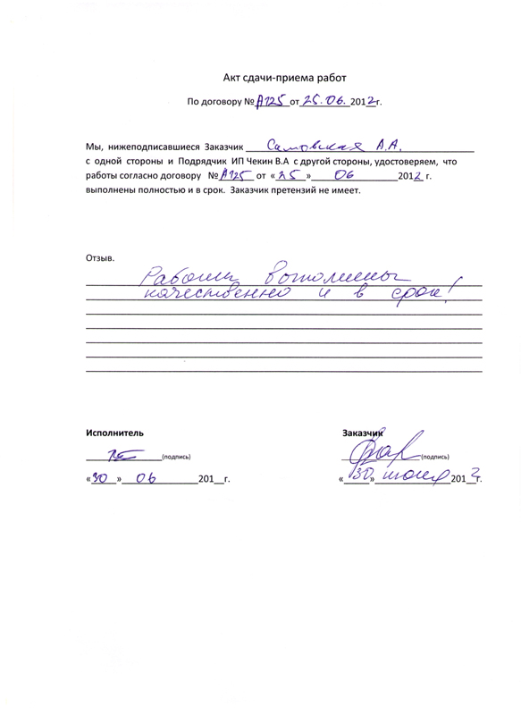 Работы выполнены качественно и в срок!